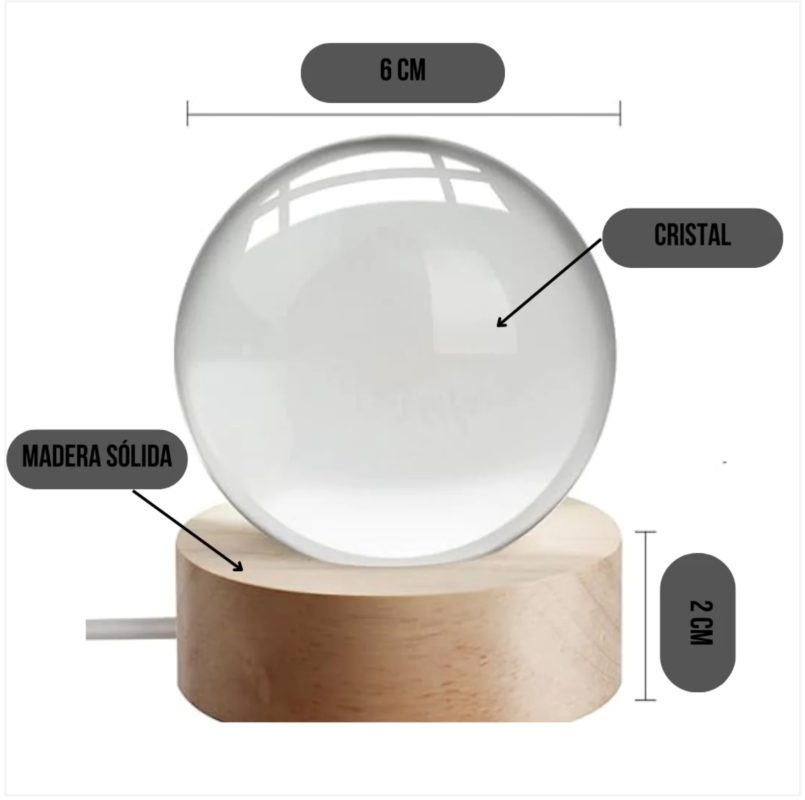 📏 Tamaño: la esfera de cristal tiene un diámetro de 6 cm.